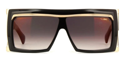 This square Cazal sunglass comes in a matte black with gold frame with grey with flash mirror lenses.