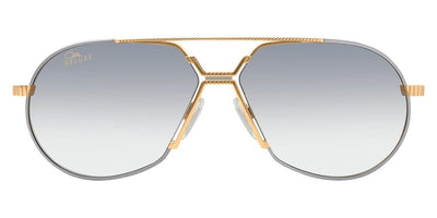 This square Cazal sunglass comes in a black and silver frame with green gradient lenses.