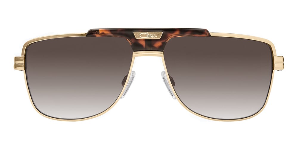 This square Cazal sunglass comes in a gold and amber frame with brown gradient lenses.