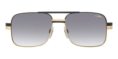 This square Cazal sunglass comes in a black and silver frame with green gradient lenses.