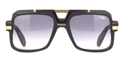 This square Cazal sunglass comes in a shiny black and gold plated frame with grey gradient lenses.