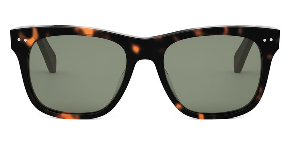This square Celine sunglass comes in a shiny dark havana frame with green with light mirror lenses.