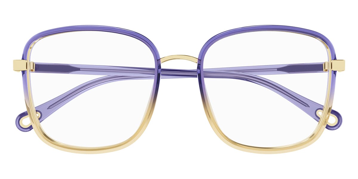 This square Chloe optical comes in a shiny crystal violet to crystal mustard yellow gradient frame.