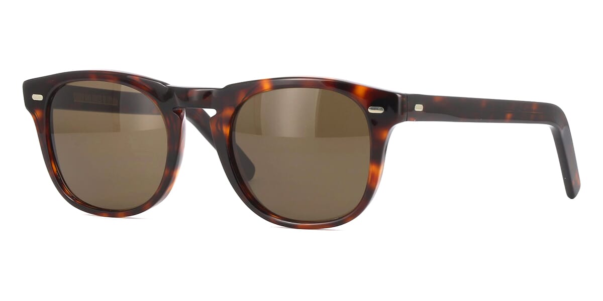 This square Cutler and Gross sunglass comes in a shiny dark havana frame with brown with light mirror lenses.