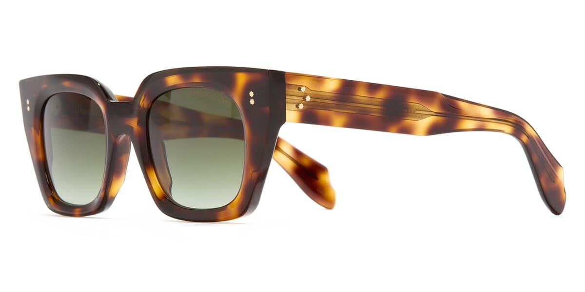 This square Cutler and Gross sunglass comes in a havana frame with green gradient lenses.