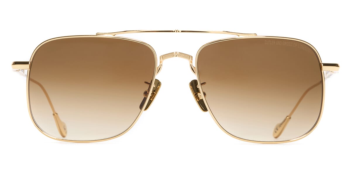 This aviator Cutler and Gross sunglass comes in a gold with bones details frame with brown lenses.