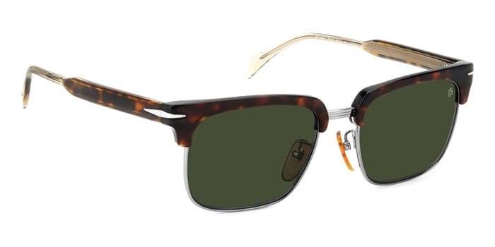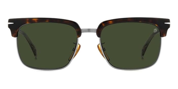 This square David Beckham sunglass comes in a havana with ruthenium silver frame with green lenses.