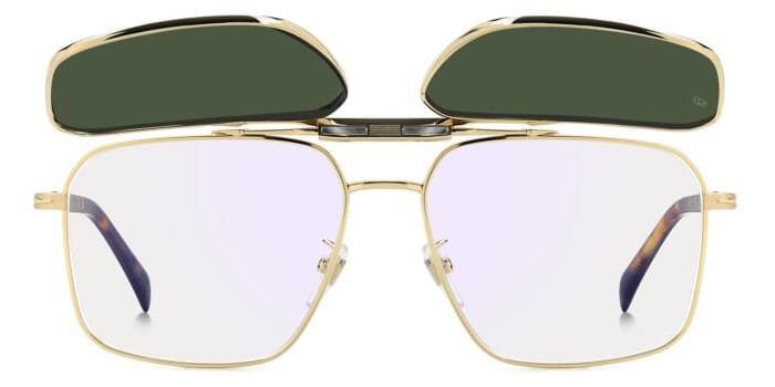 This square David Beckham optical comes in a gold with black frame with green polarised lenses.