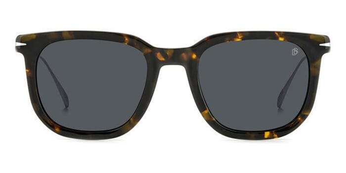 This square David Beckham sunglass comes in a havana with dark ruthenium frame with grey lenses.