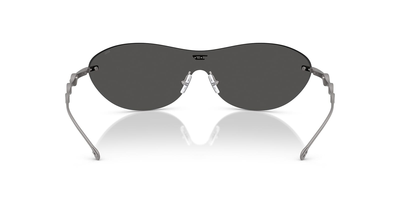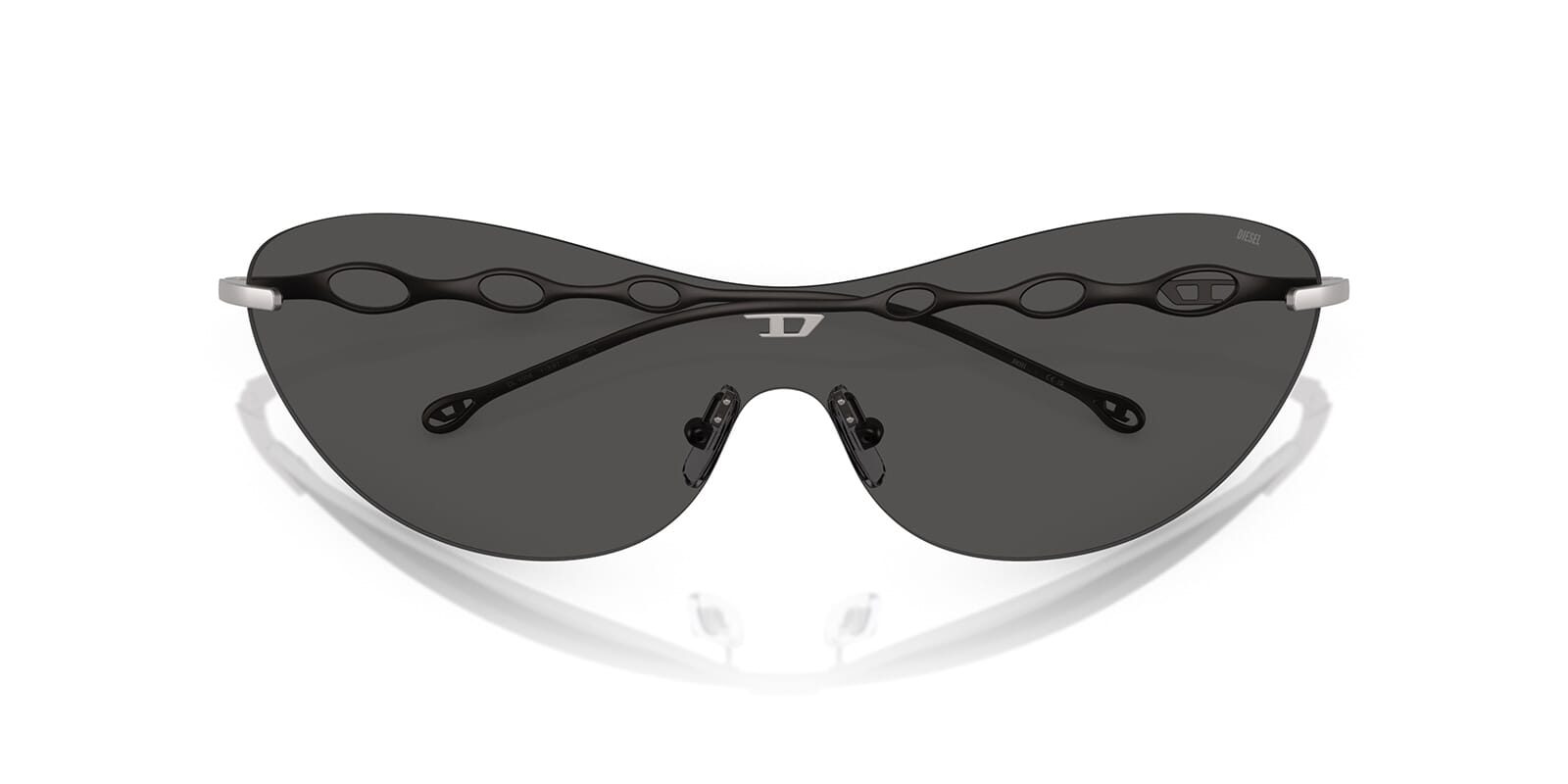 This round Diesel sunglass comes in a matte gunmetal frame with dark grey lenses.