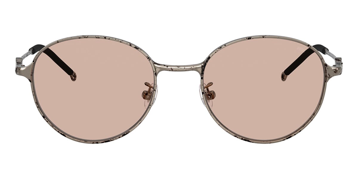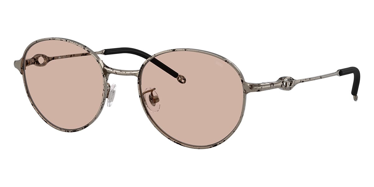 This round Diesel sunglass comes in a distressed antique silver frame with light brown lenses.