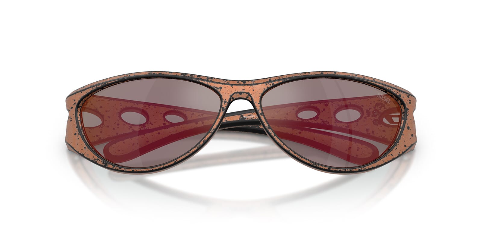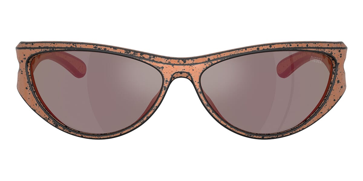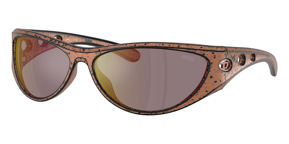 This cat eye Diesel sunglass comes in a bronze barrelling black frame with grey with bronze mirror lenses.