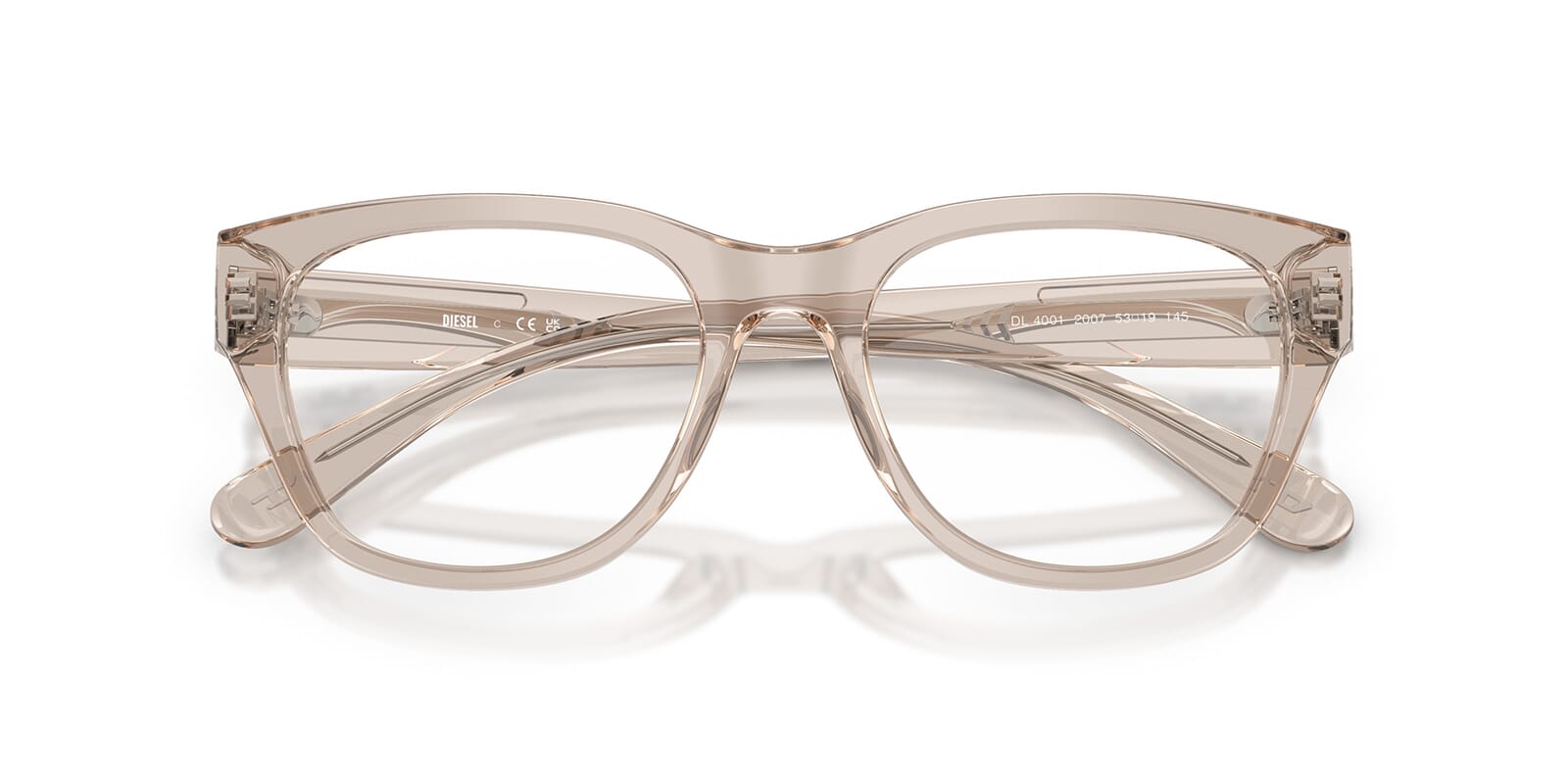 This square Diesel optical comes in a taupe crystal frame.