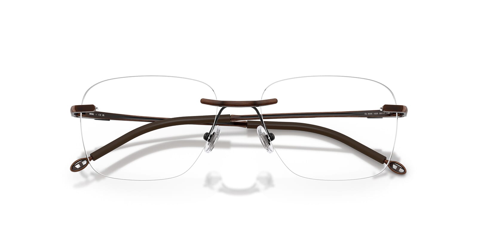This rectangular Diesel optical comes in a brushed antique yellow brown frame.