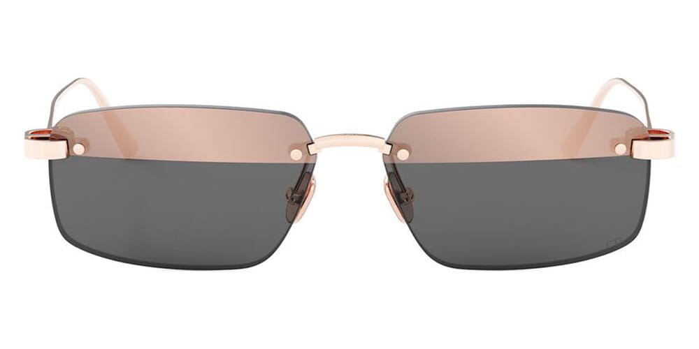 This rectangular Dior sunglass comes in a shiny rose gold frame with grey with rose semi flash mirror lenses.