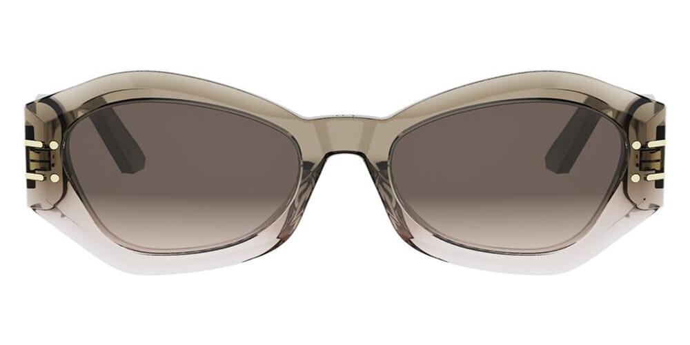This square Dior sunglass comes in a shiny crystal green to clear gradient frame with brown gradient lenses.