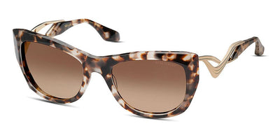 This cat eye Dita sunglass comes in a black and yellow gold frame with grey gradient lenses.