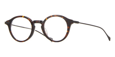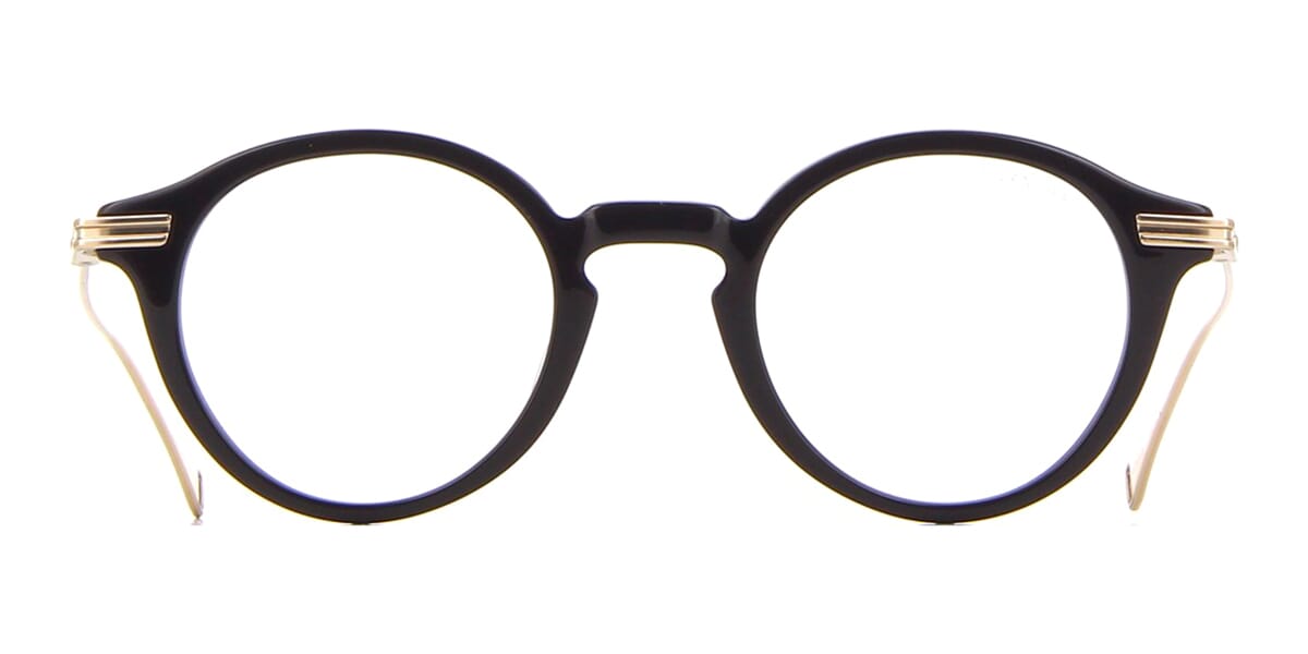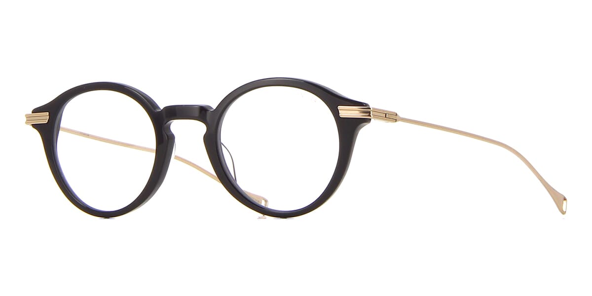 This round Dita Lancier optical comes in a shiny black and gold sand frame.