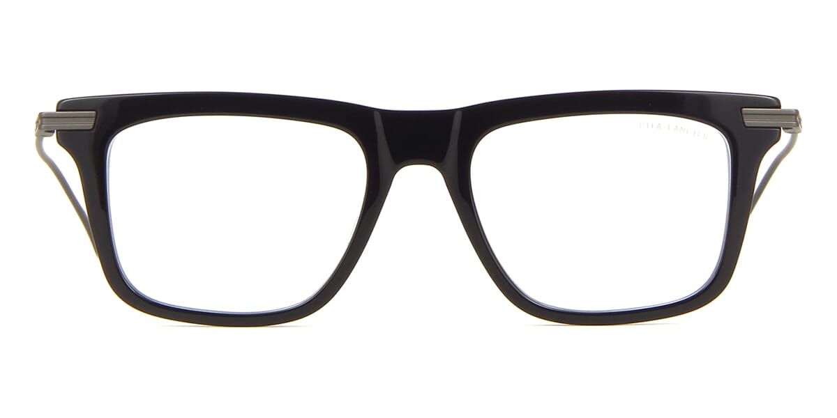 This square Dita Lancier optical comes in a shiny black and gunmetal frame.
