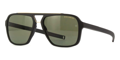 This aviator Dita Lancier sunglass comes in a matte black with gold frame with green with light mirror lenses.