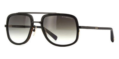 This square Dita sunglass comes in antique silver and matte black frame with dark grey to clear gradient lenses.