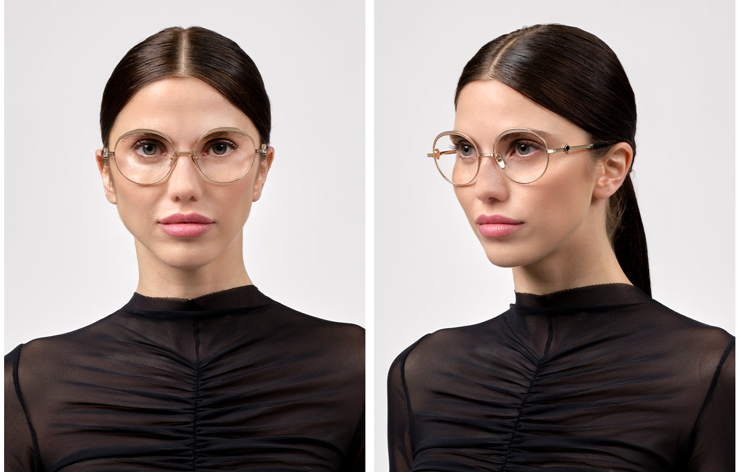 This round Dita optical comes in a rose gold and dust pink frame.