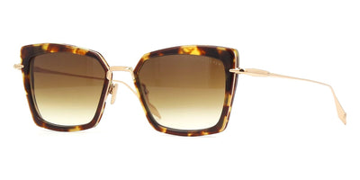 This square Dita sunglass comes in a black haze and yellow gold frame with dark grey to clear gradient lenses.