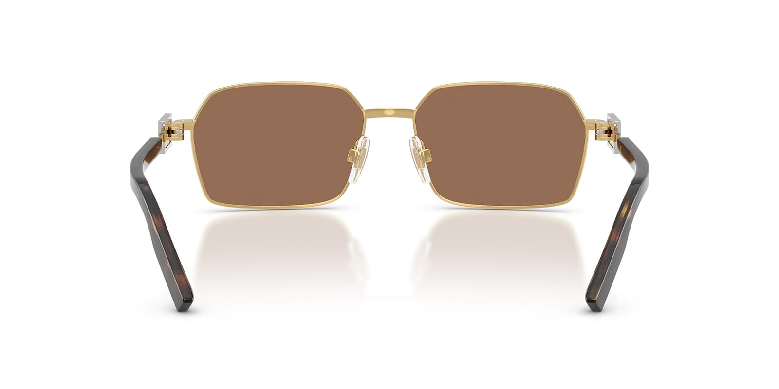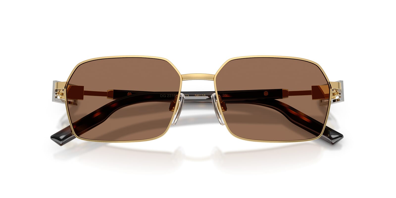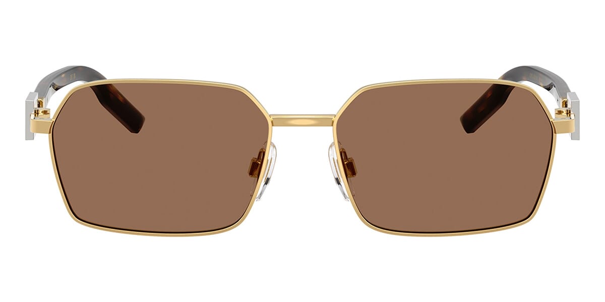 This rectangular Dolce&Gabbana sunglass comes in a gold frame with dark brown lenses.