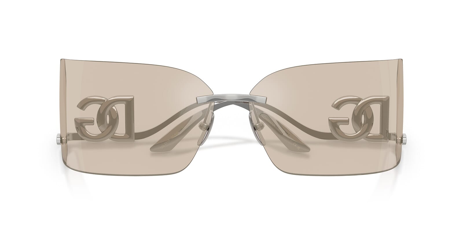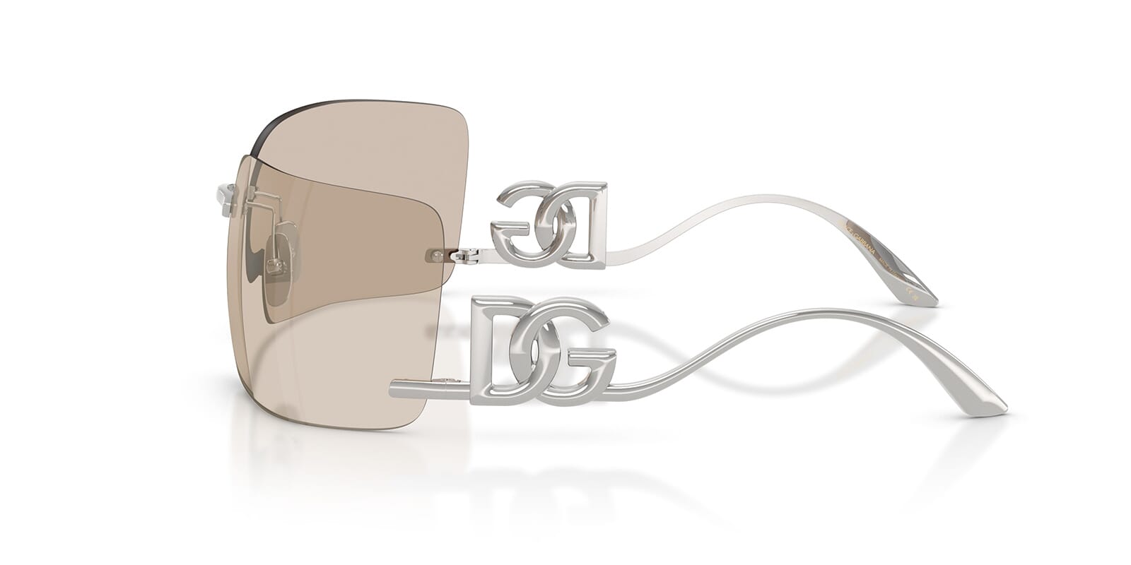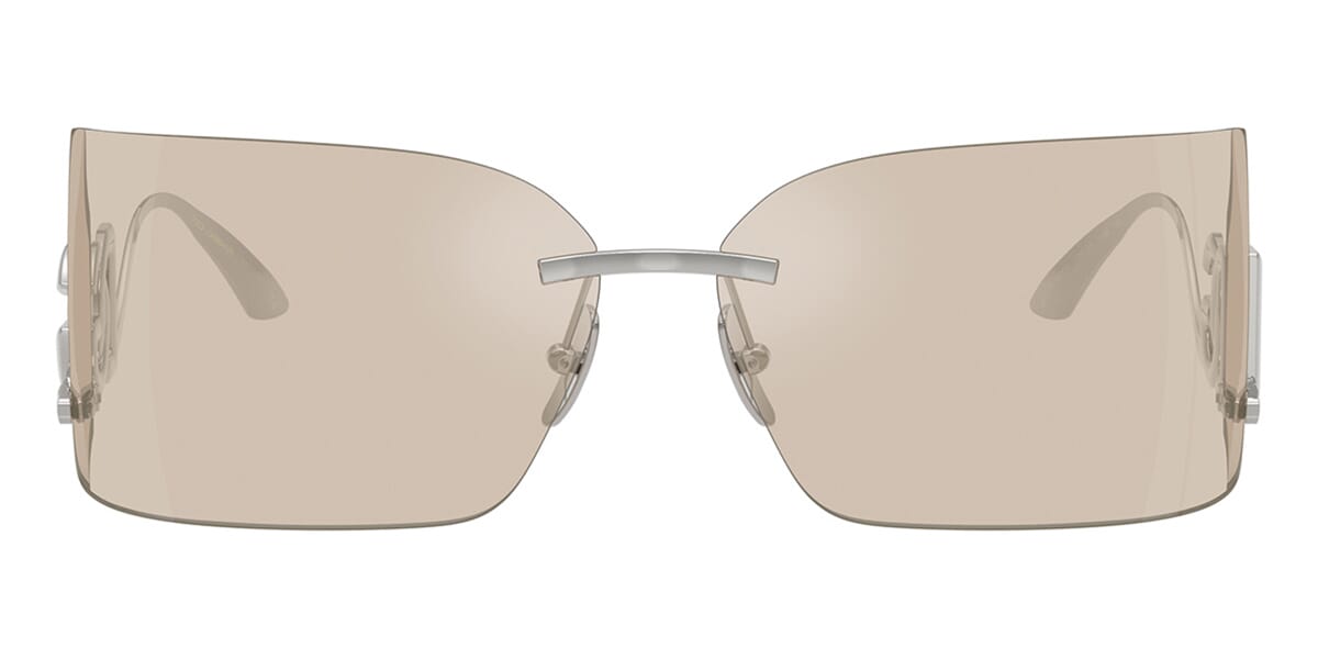 This rectangular Dolce&Gabbana sunglass comes in a silver frame with light brown with ivory flash mirror lenses.