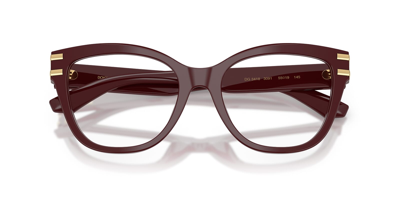 This butterfly Dolce&Gabbana optical comes in a bordeaux frame.