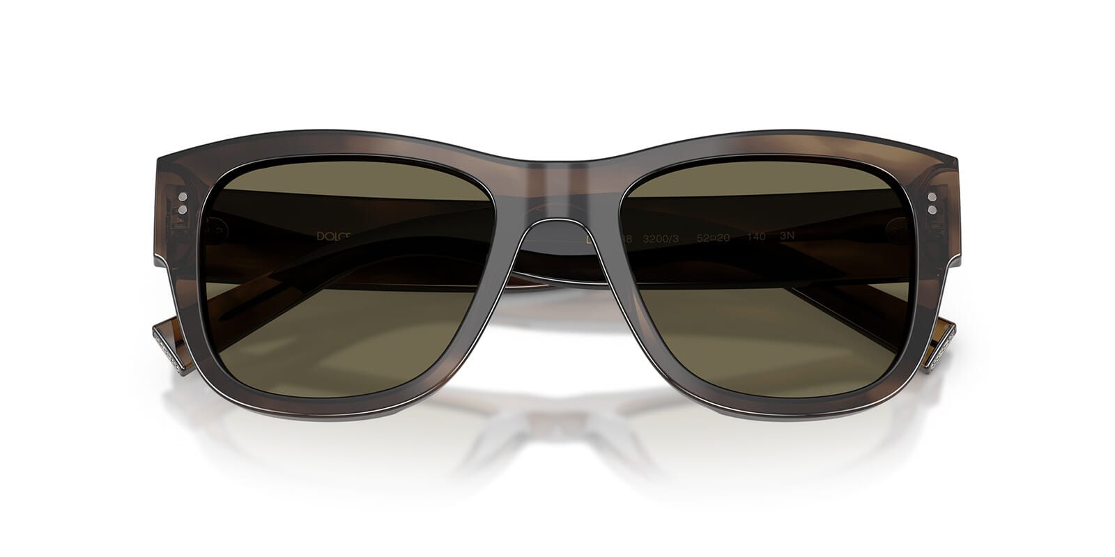 This square Dolce&Gabbana sunglass comes in a green havana frame with brown lenses.
