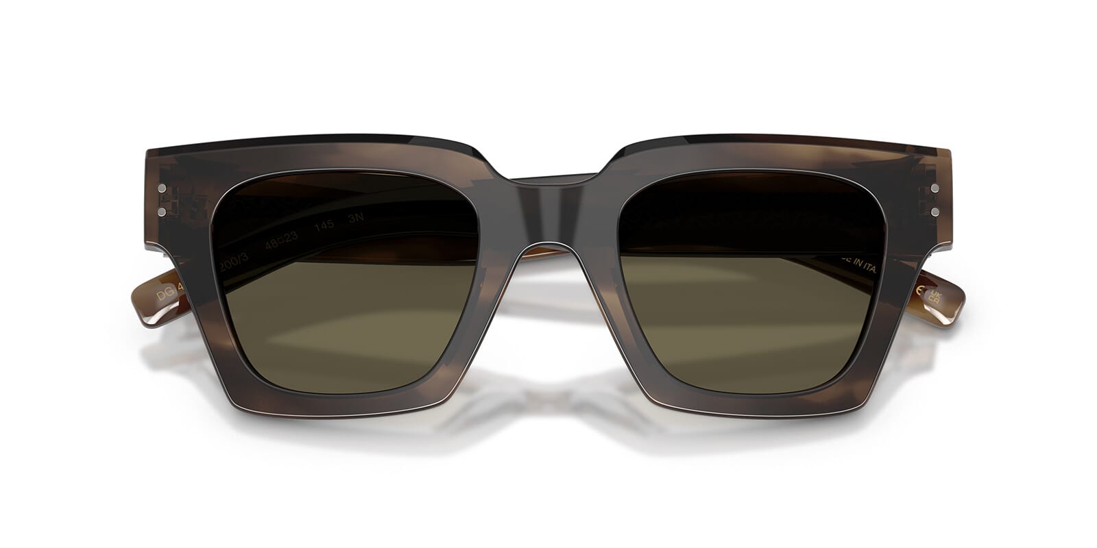 This square Dolce&Gabbana sunglass comes in a green havana frame with brown lenses.
