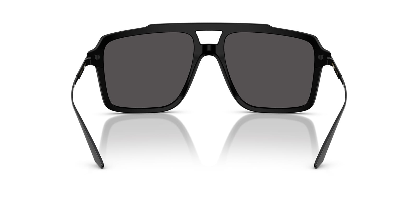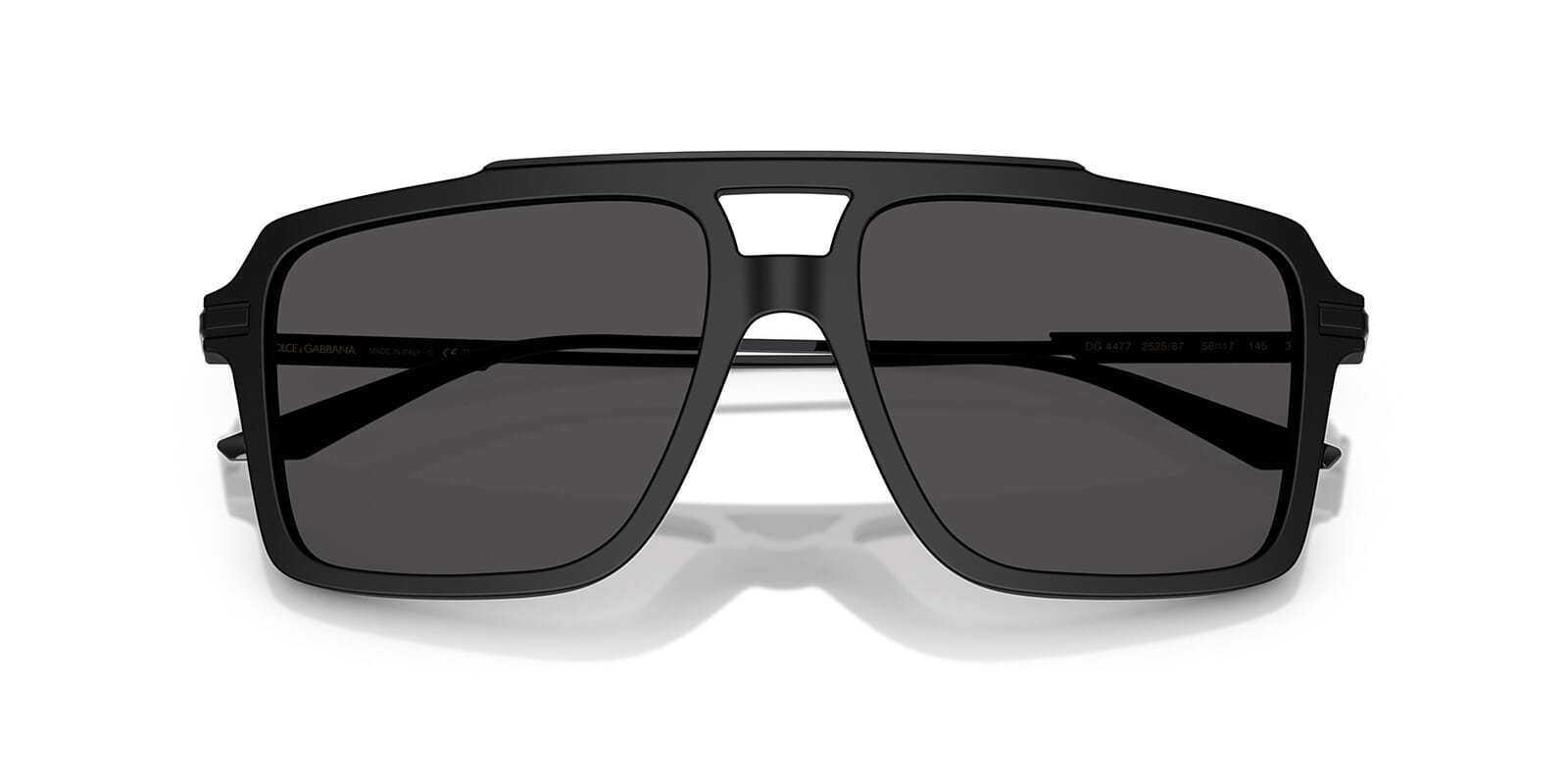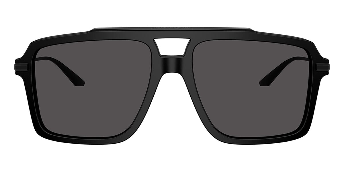 This aviator Dolce&Gabbana sunglass comes in a matte black frame with dark grey lenses.