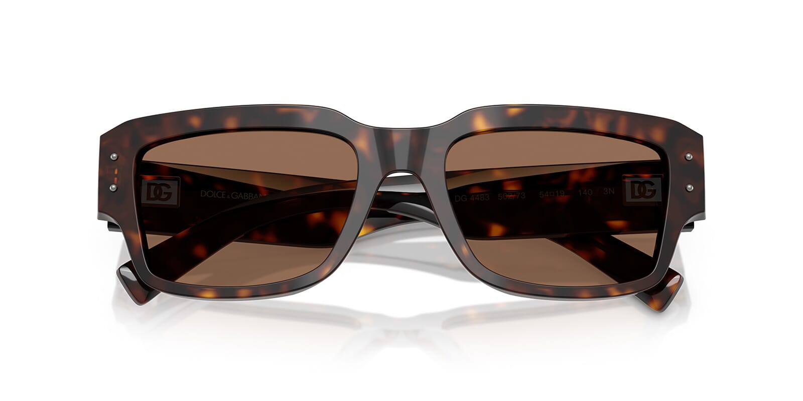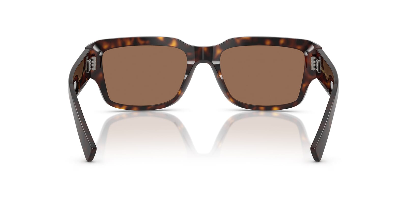 This square Dolce&Gabbana sunglass comes in a havana frame with dark brown lenses.