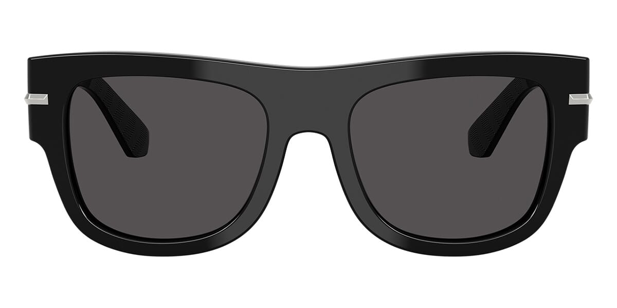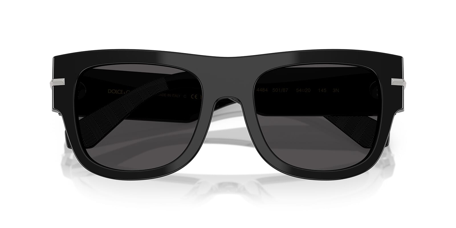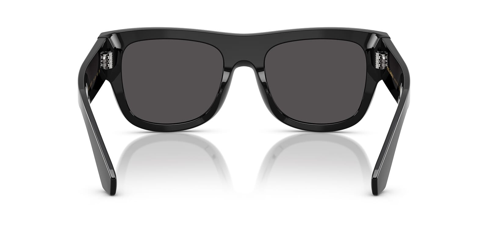 This square Dolce&Gabbana sunglass comes in a black frame with dark grey lenses.