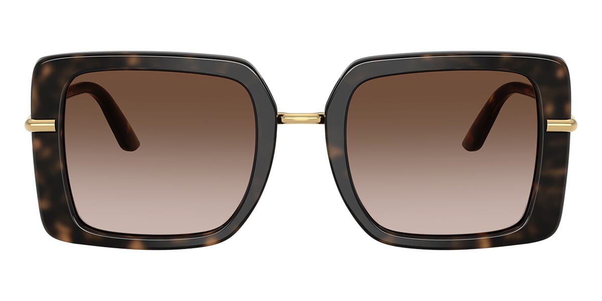 This square Dolce&Gabbana sunglass comes in a havana on white barrow frame with brown gradient lenses.
