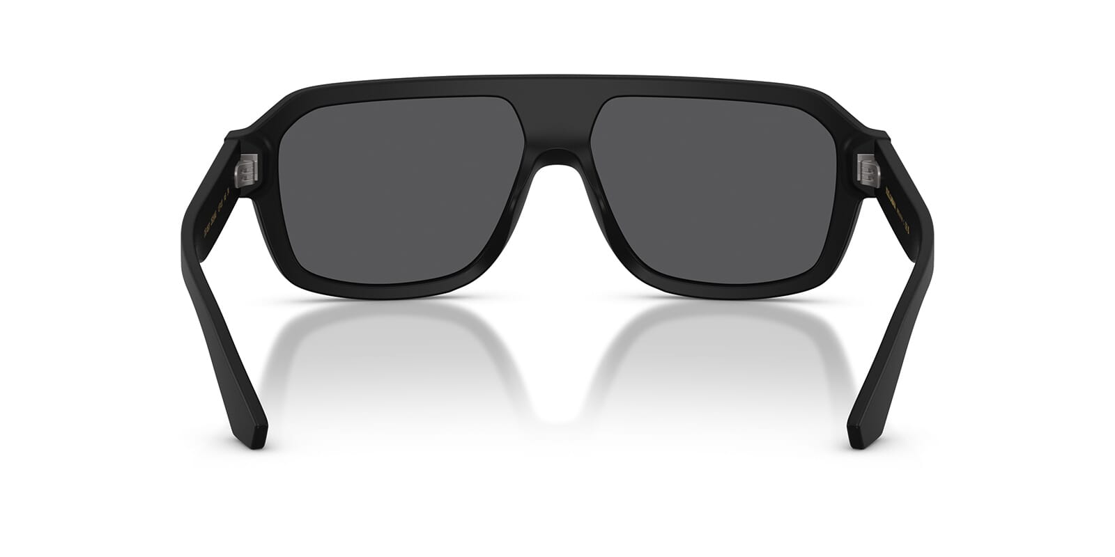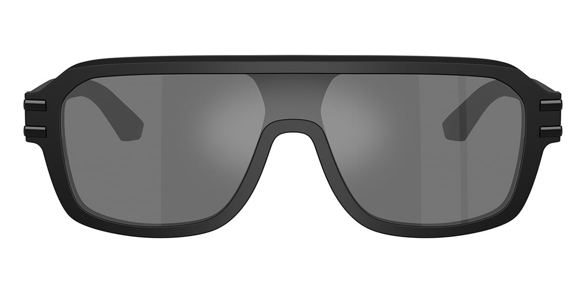This aviator Dolce&Gabbana sunglass comes in a matte black frame with grey with black mirror lenses.