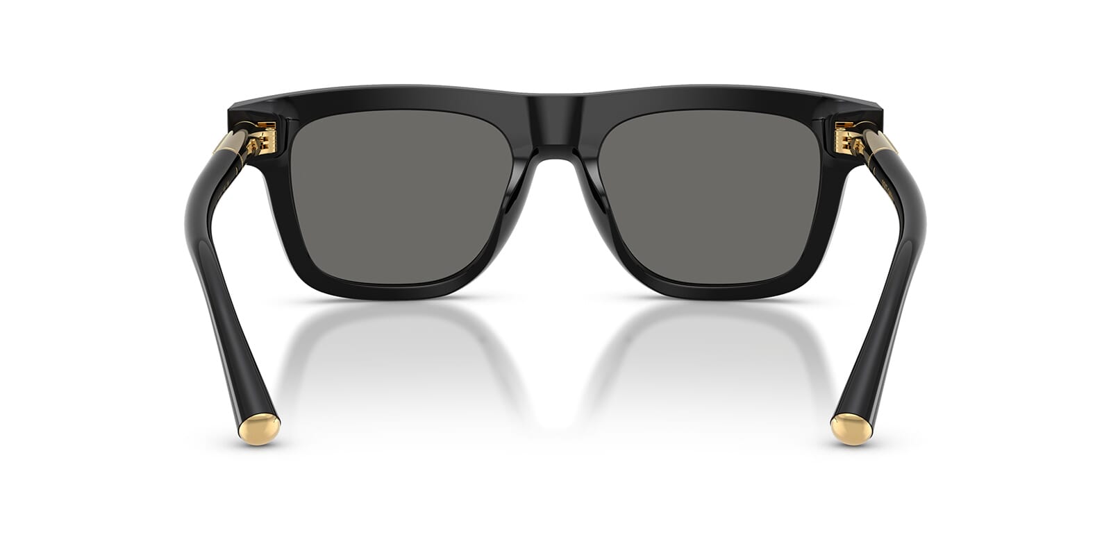 This square Dolce&Gabbana sunglass comes in a black frame with grey lenses.