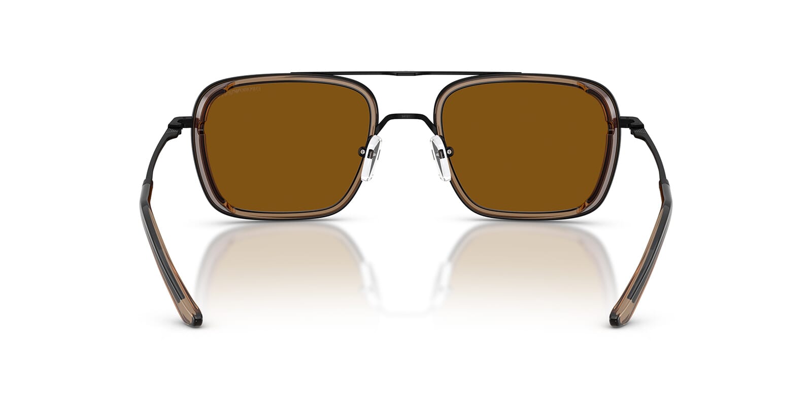 This square Emporio Armani sunglass comes in a matte black frame with dark bronze lenses.