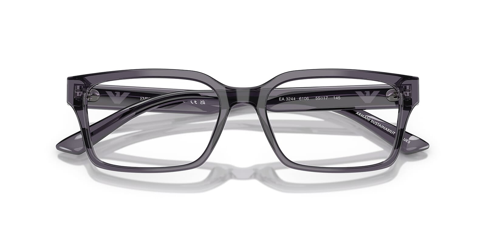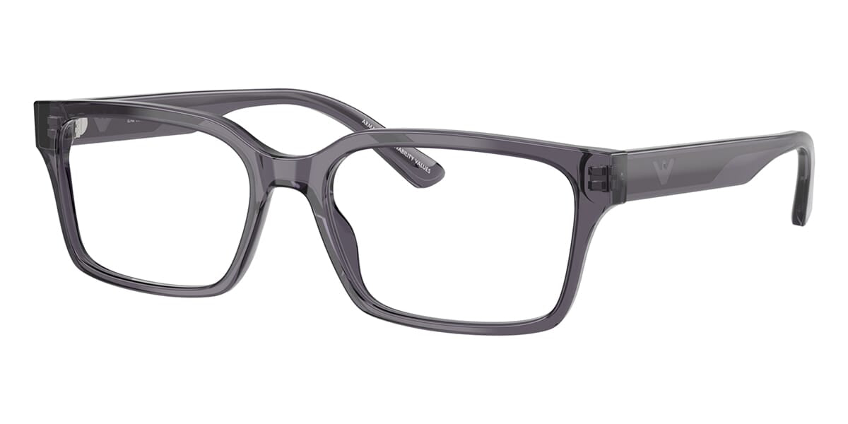 This rectangular Emporio Armani optical comes in a transparent dark grey frame.