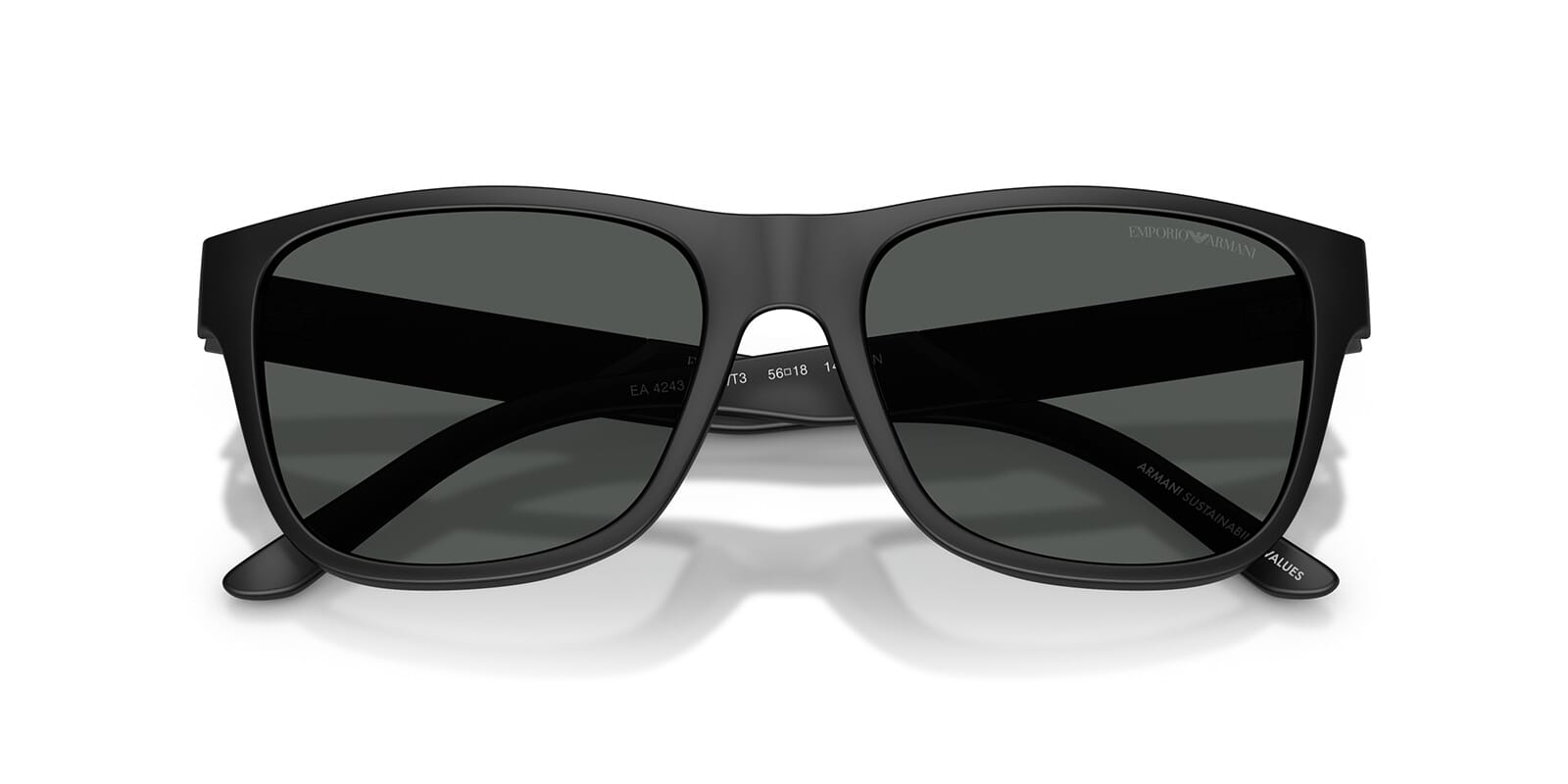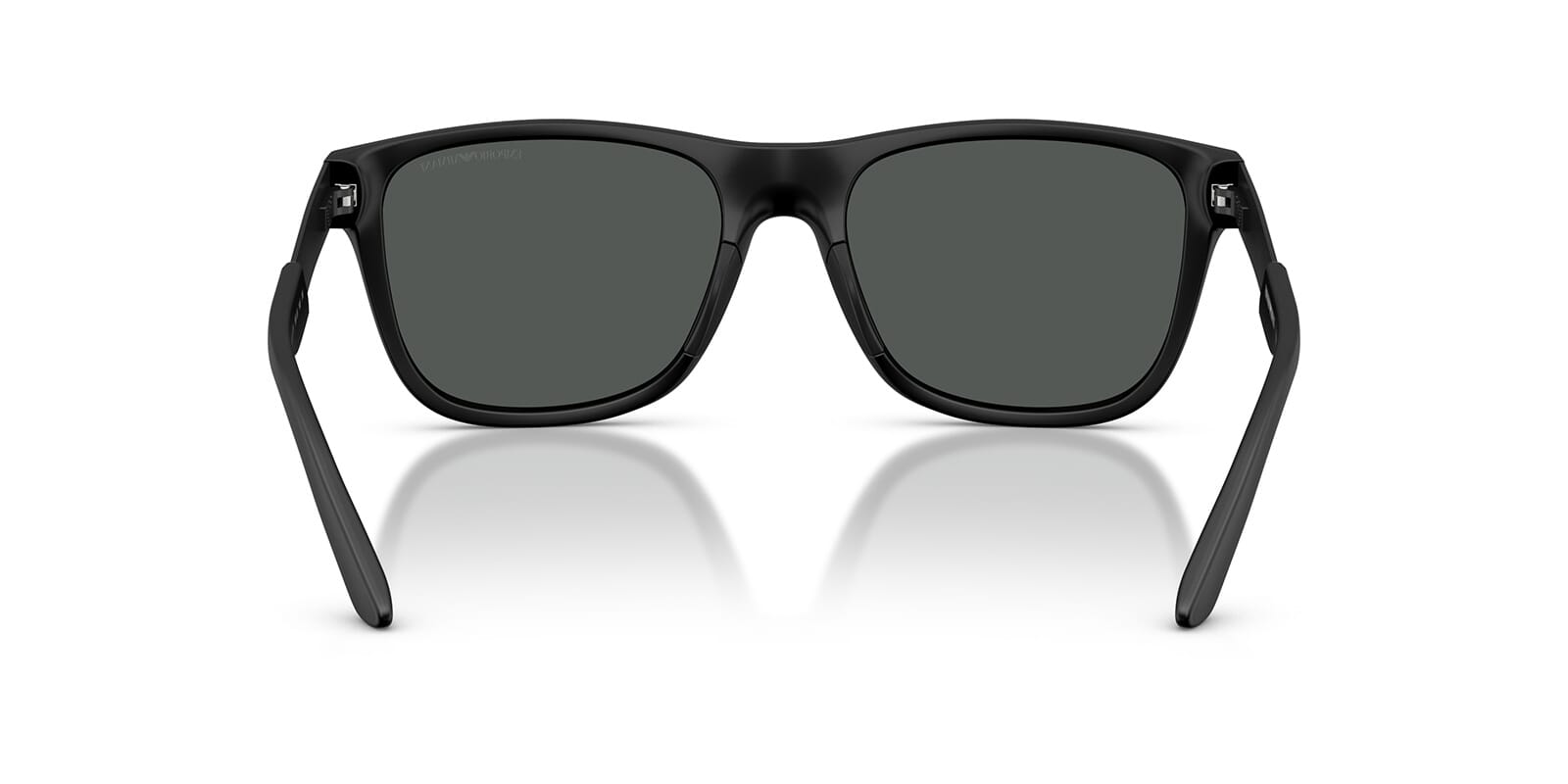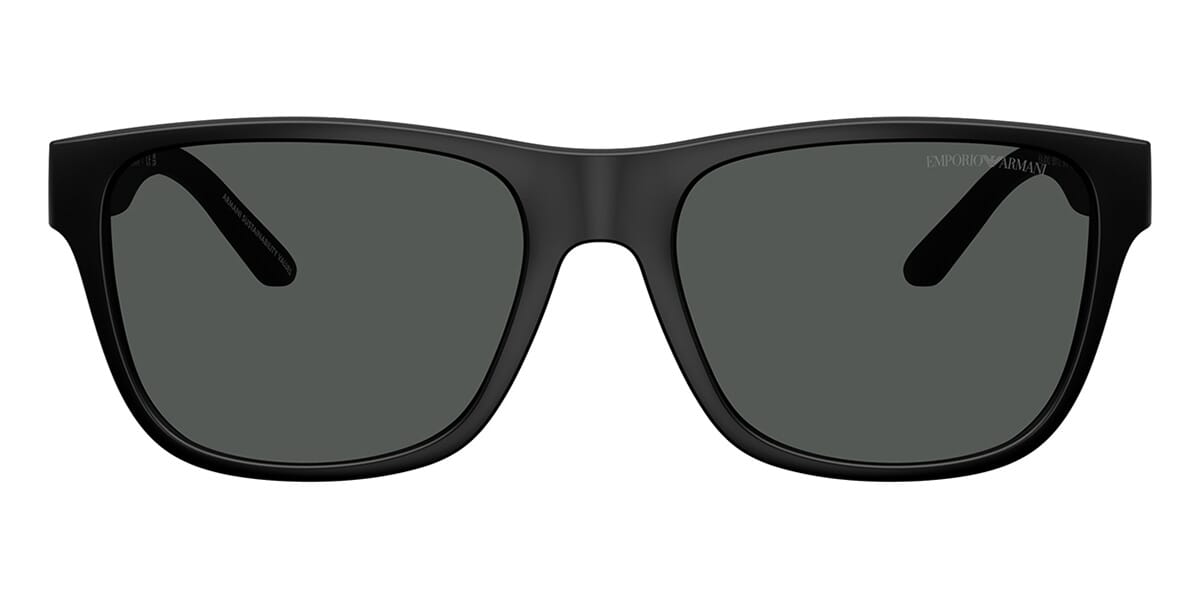 This square Emporio Armani sunglass comes in a matte black frame with dark grey lenses.