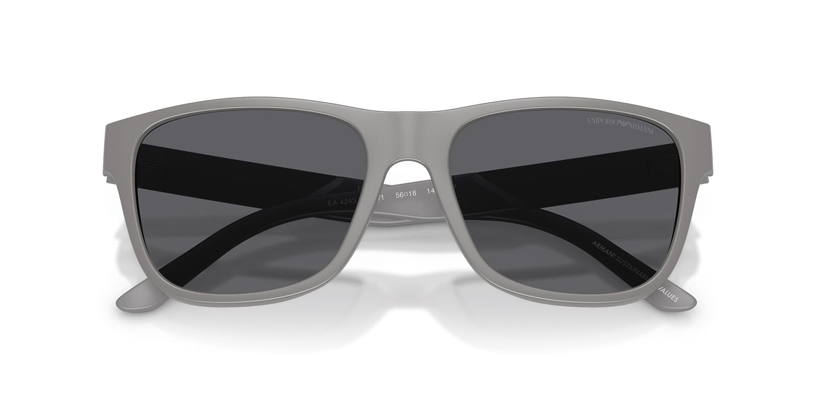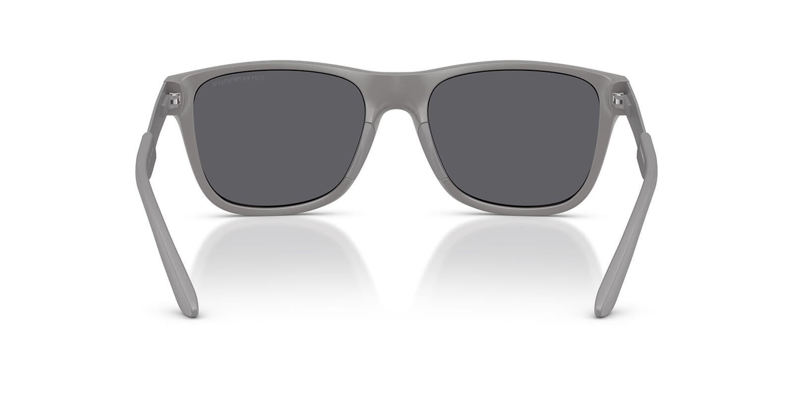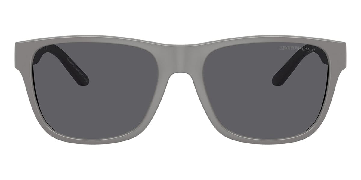 This square Emporio Armani sunglass comes in a matte grey frame with grey polarised lenses.