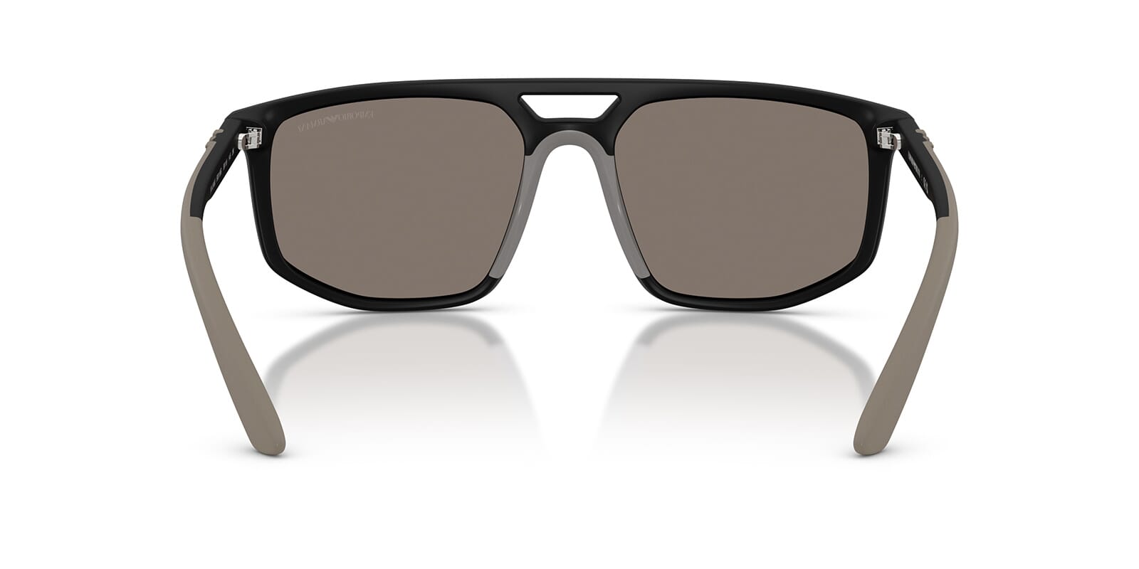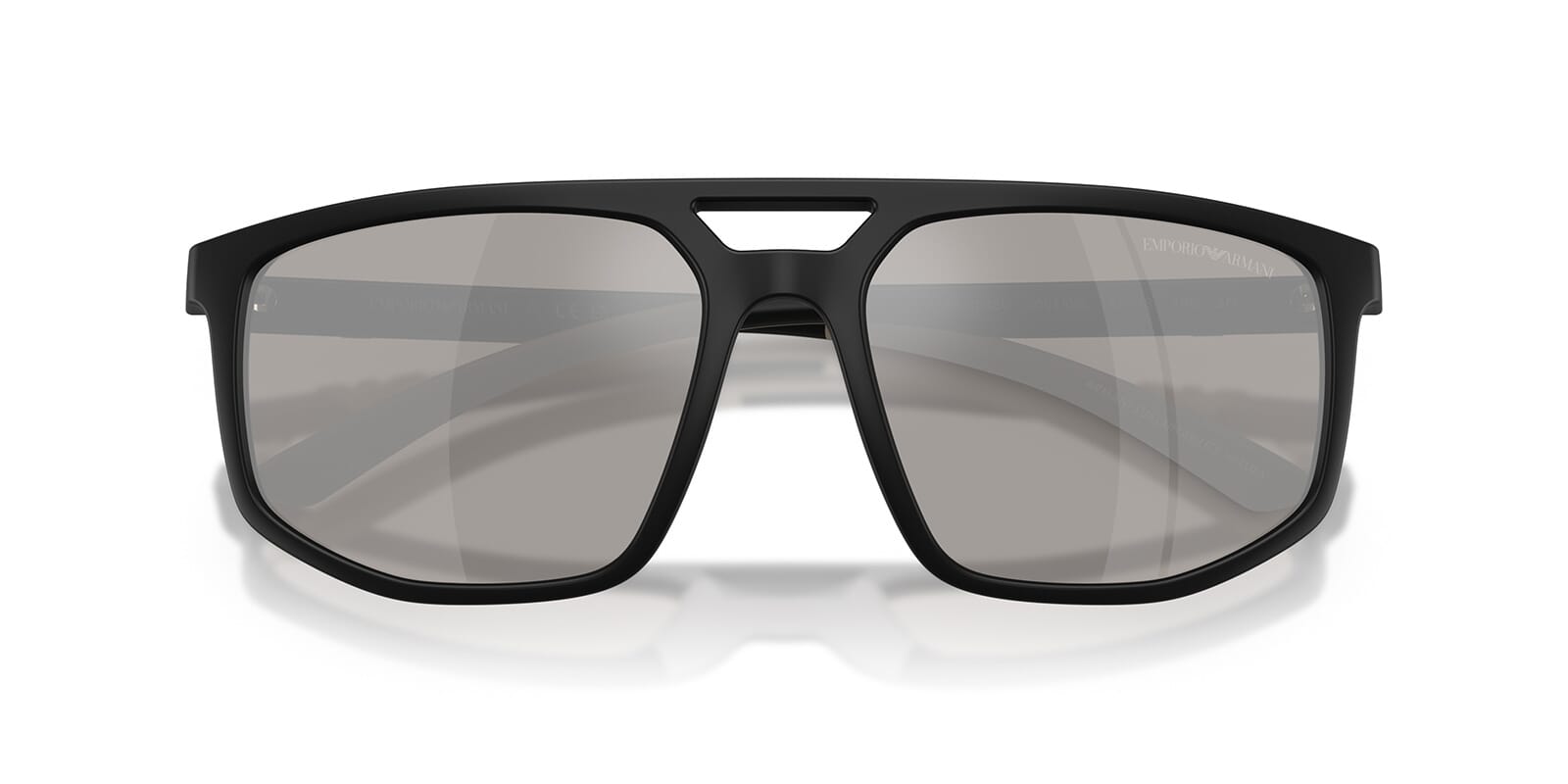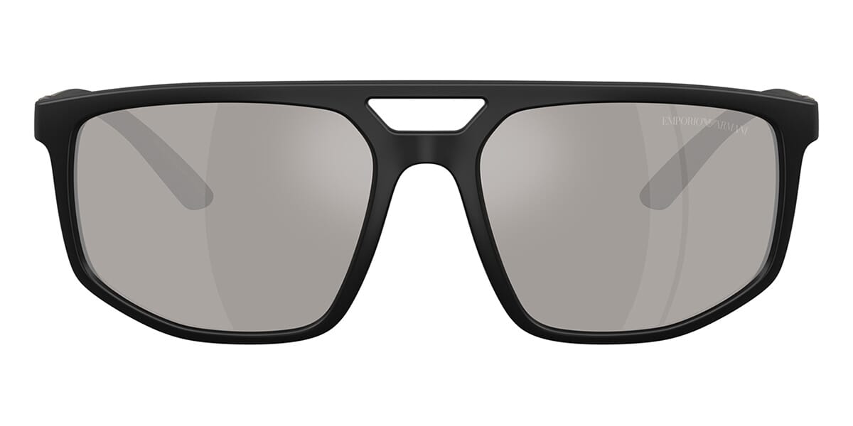 This aviator Emporio Armani sunglass comes in a matte black frame with light grey with silver mirror lenses.