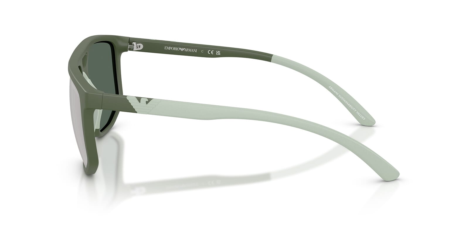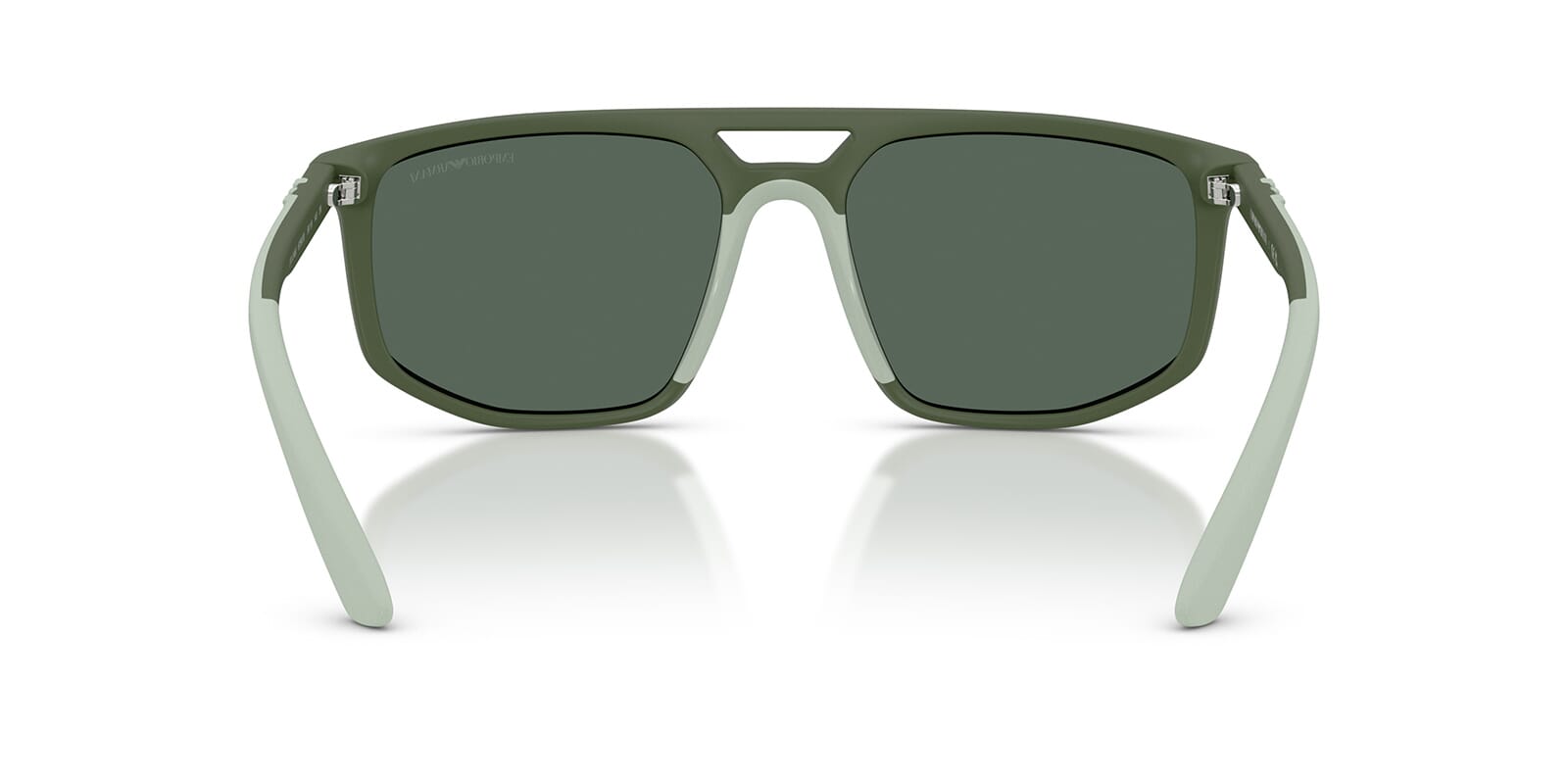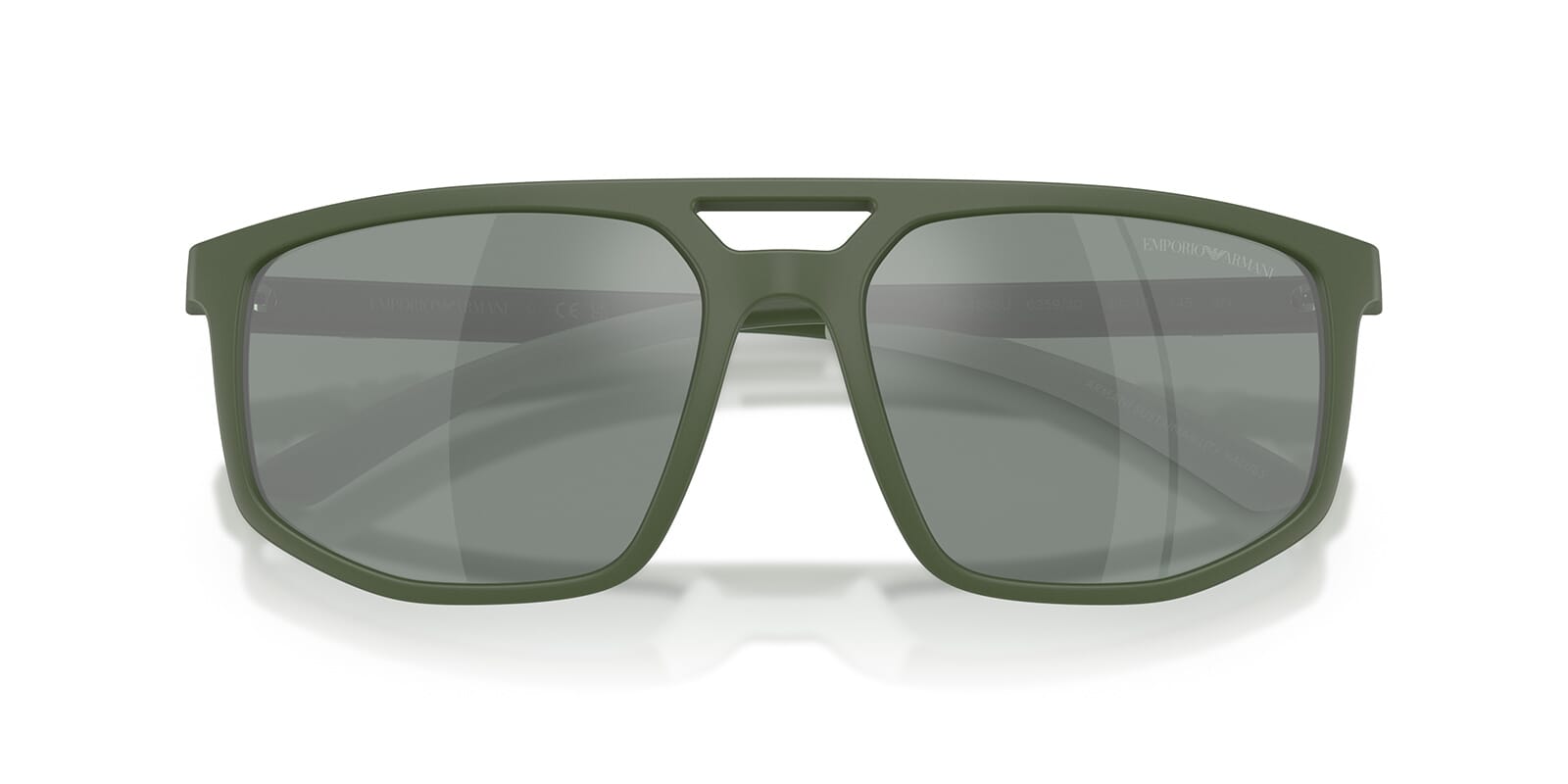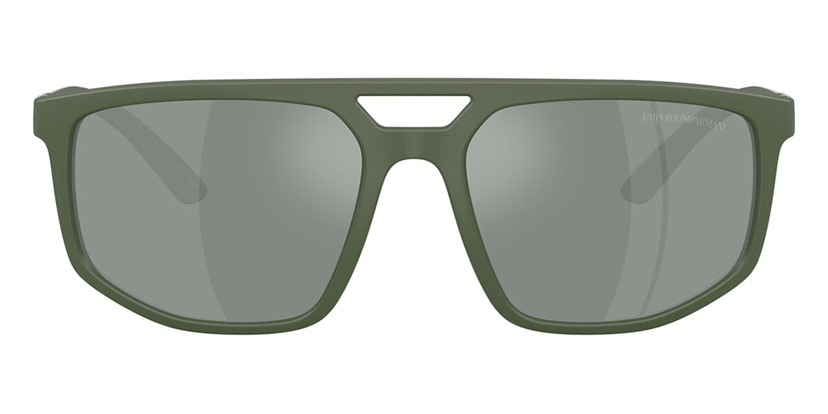 This aviator Emporio Armani sunglass comes in a matte agave frame with green with silver mirror lenses.