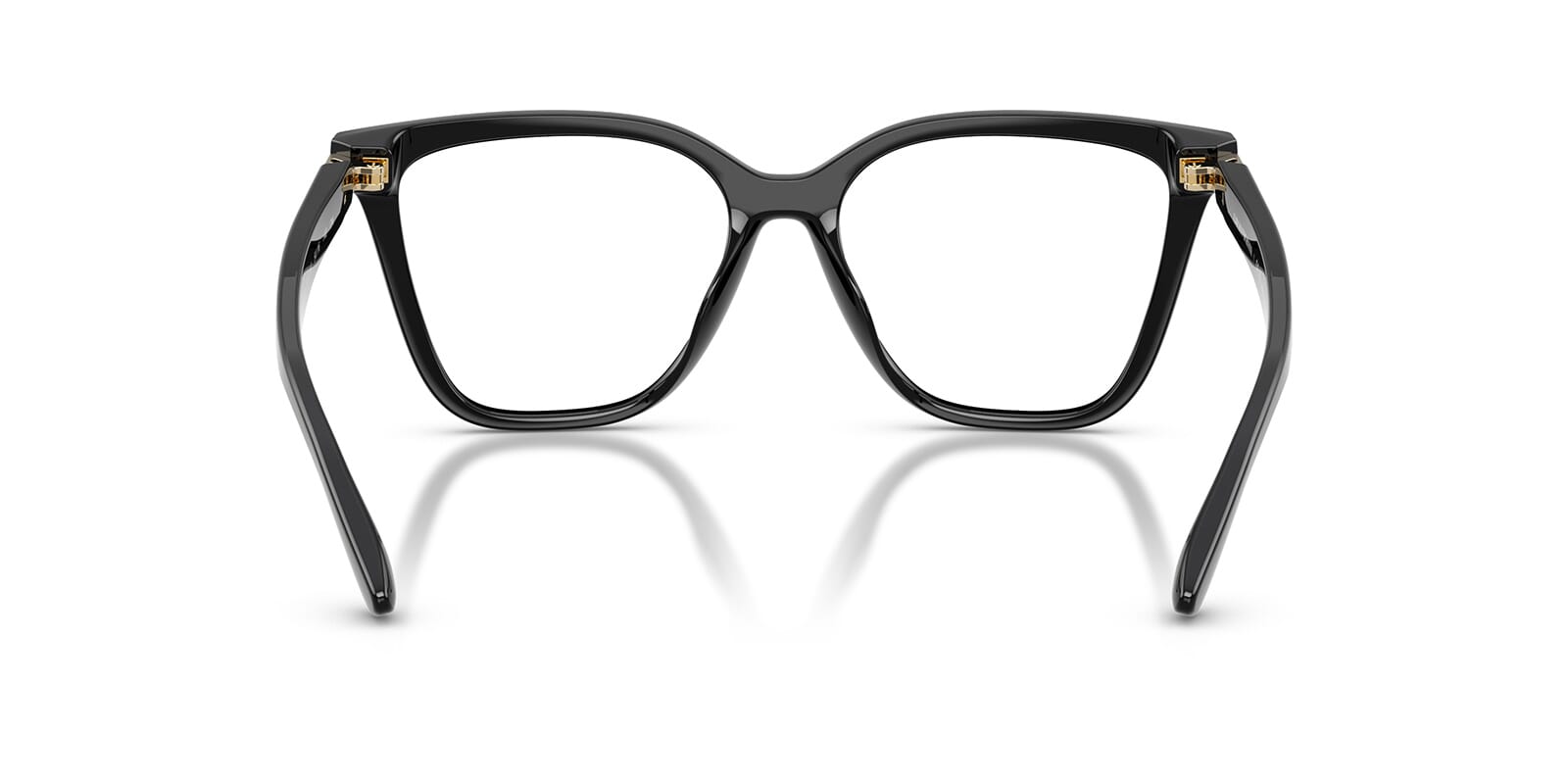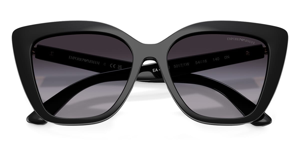 This cat eye Emporio Armani sunglass comes in a shiny black frame with clear uv lenses.