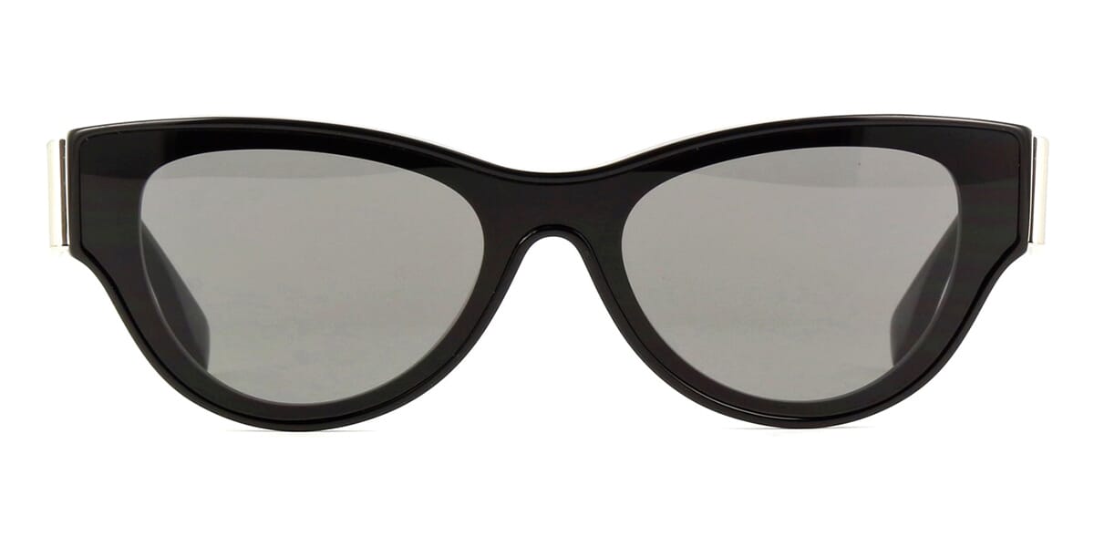 This cat eye Fendi sunglass comes in a shiny black frame with grey smoke lenses.
