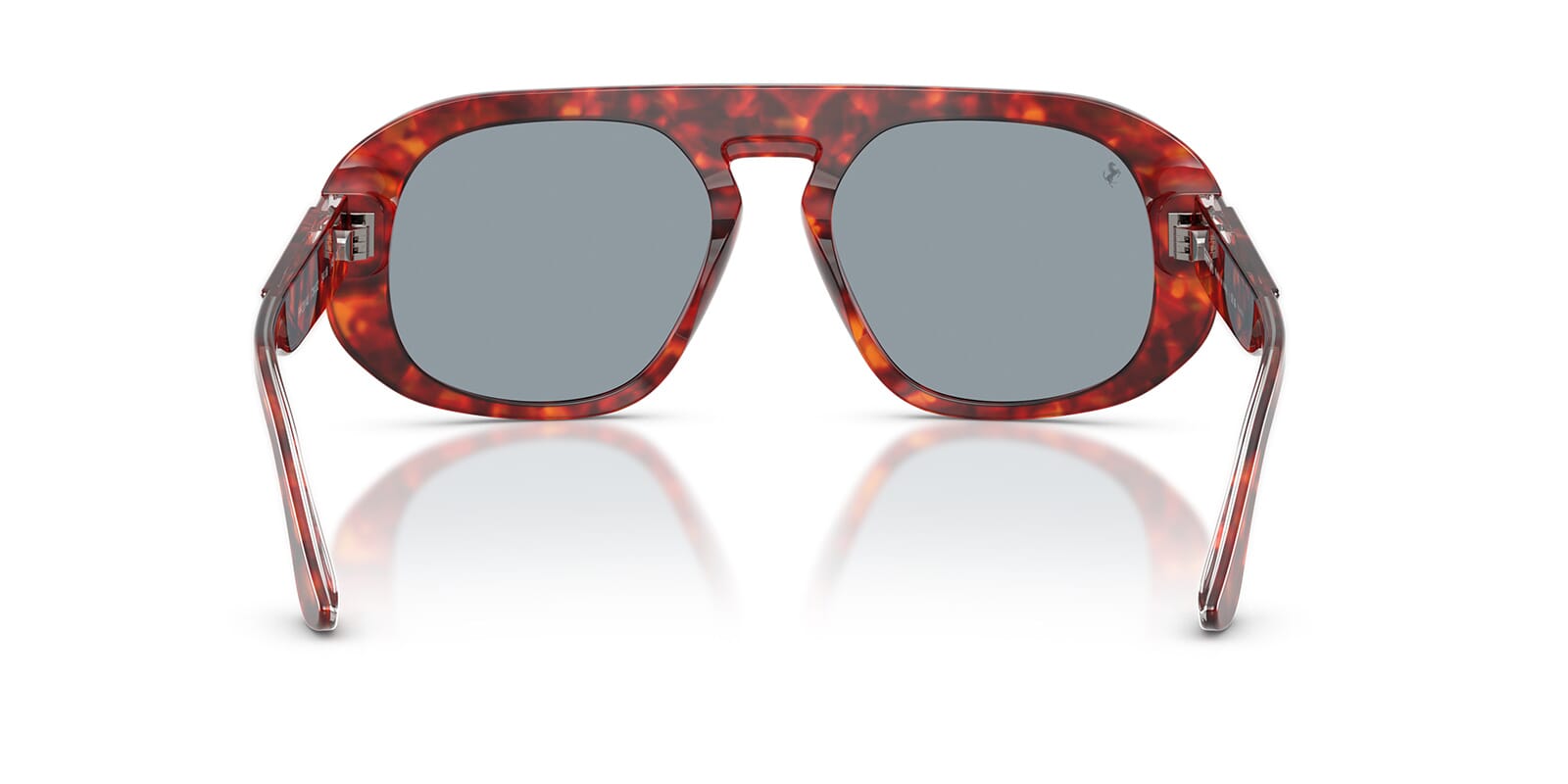 This square Ferrari Scuderia sunglass comes in a brown tortoise frame with blue polarised lenses.