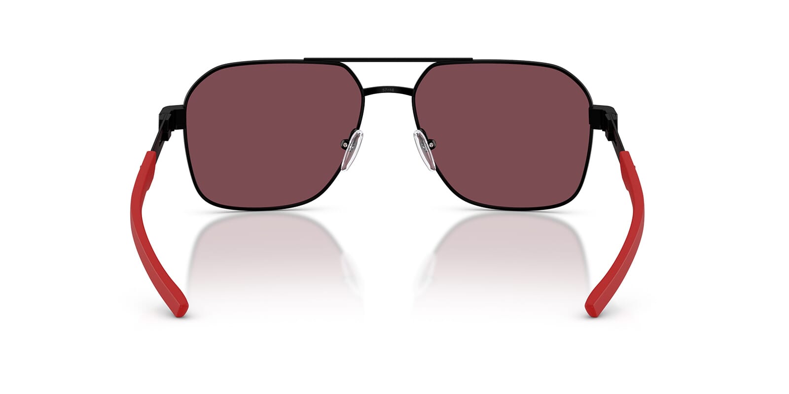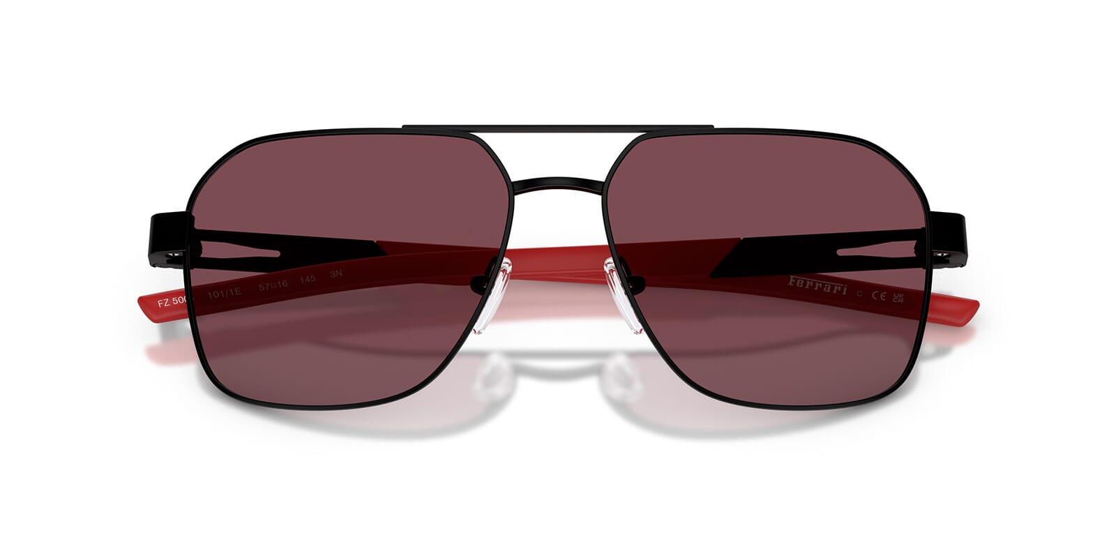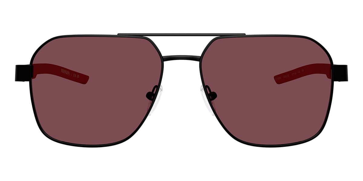 This square Ferrari Scuderia sunglass comes in a matte black frame with red ferrari exclusive lenses.