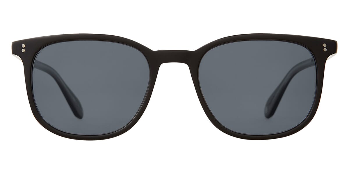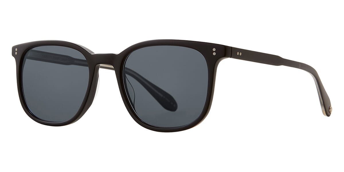 This square Garrett Leight sunglass comes in a matte black frame with grey polarised lenses.