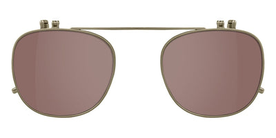This square Garrett Leight clip-on comes in a shiny gold frame with green with light mirror lenses.